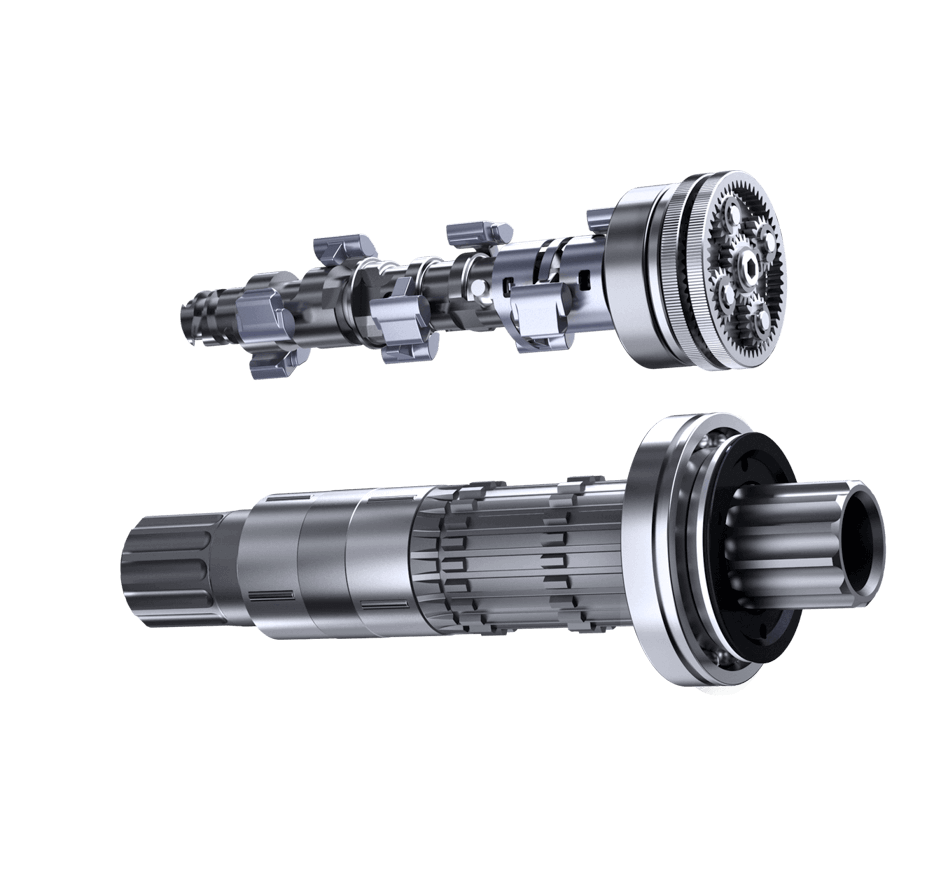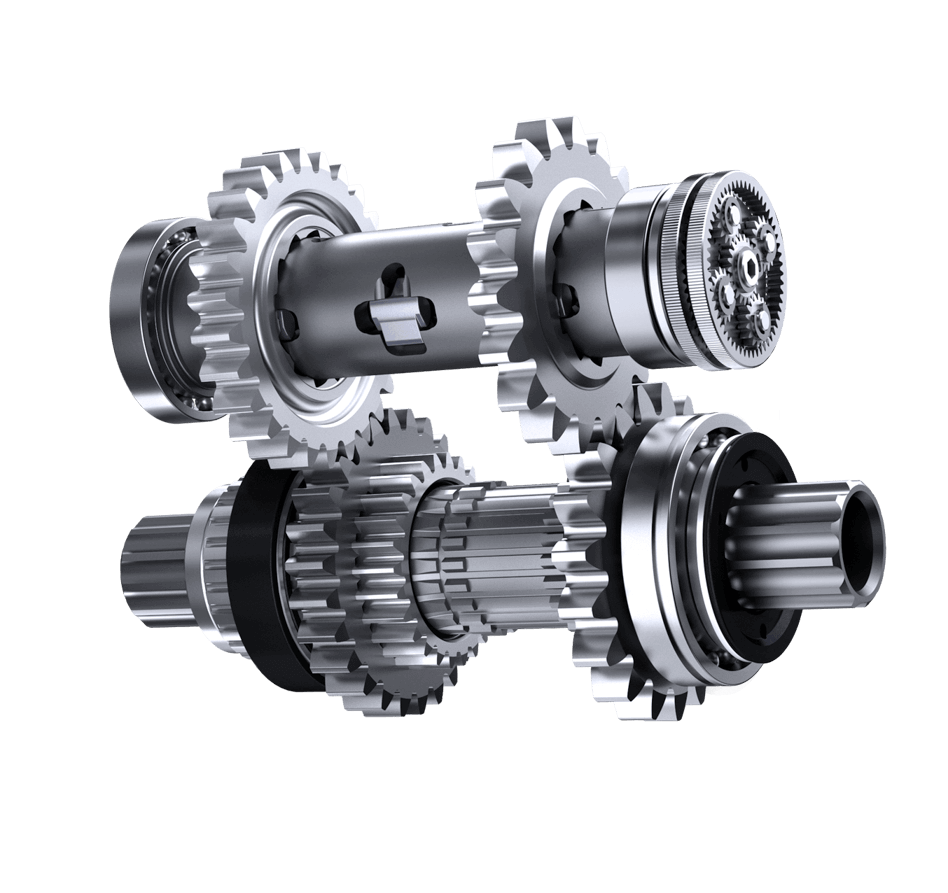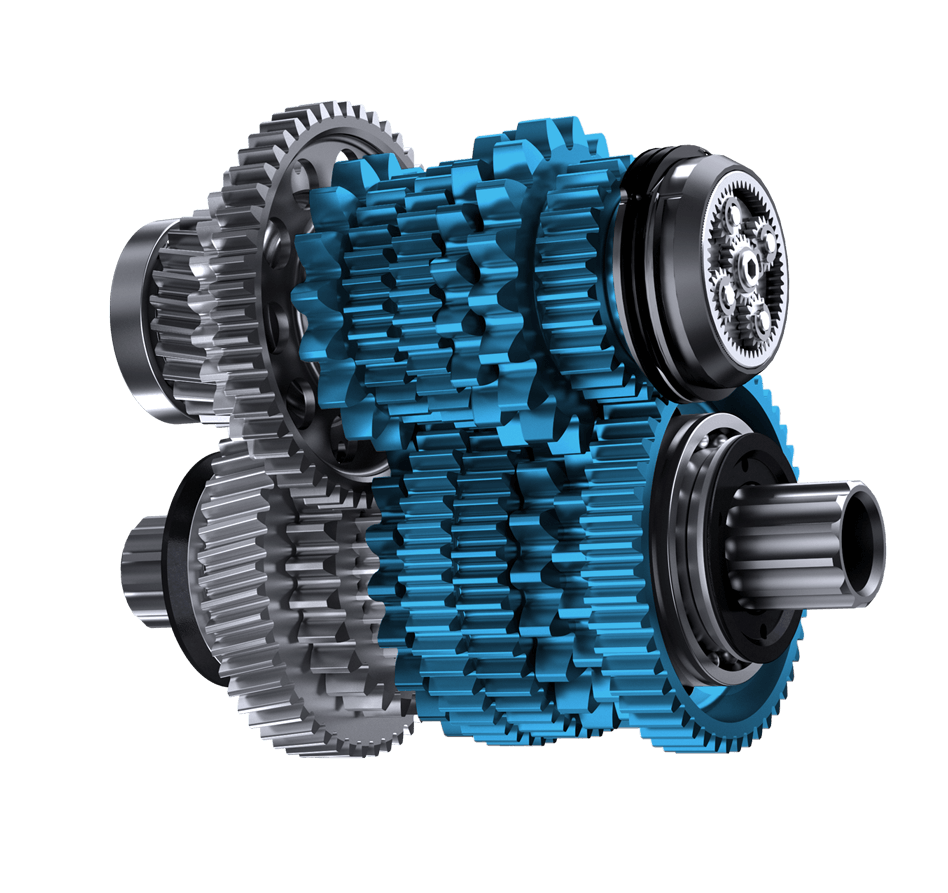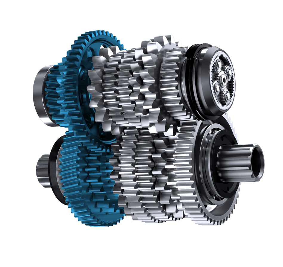 Pinion 齿轮技术基于具有两个串联部分的直齿圆柱齿轮箱。通过两个部分齿轮组各⾃不同的齿对组合来导出每个档位。这些档位步进均匀,并根据不同齿轮箱类型为其预期⽤途设计出符合⼈体⼯程学的换挡级距。