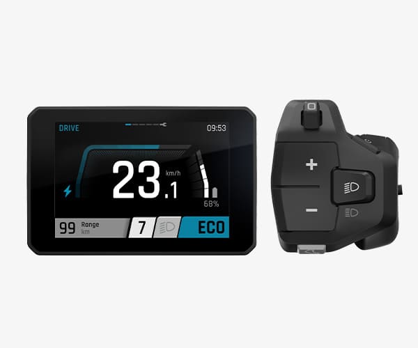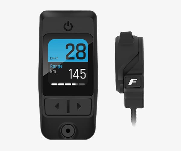 FIT 主节点 显⽰器与 Remote Pure 遥控器的组合可以直观控制你的电动⾃⾏车。集成于上管 的主节点显⽰器在 1.52 英⼨屏幕上展⽰重要骑⾏信息。安装在车把左侧的 Remote Pure 可通 过环式控制轻松调整助⼒级别。