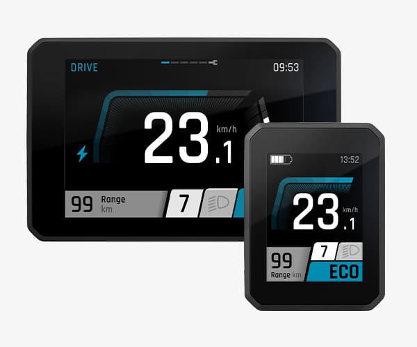 FIT 系列显⽰器是骑⼿与电动⾃⾏车系统之间的核⼼界⾯——提供具有 3.5 英⼨屏幕的“舒适 版”或 2 英⼨屏幕的“紧凑版”。两者都采⽤耐刮擦、抗反射玻璃,并在所有光线条件下具有 出⾊的可读性。